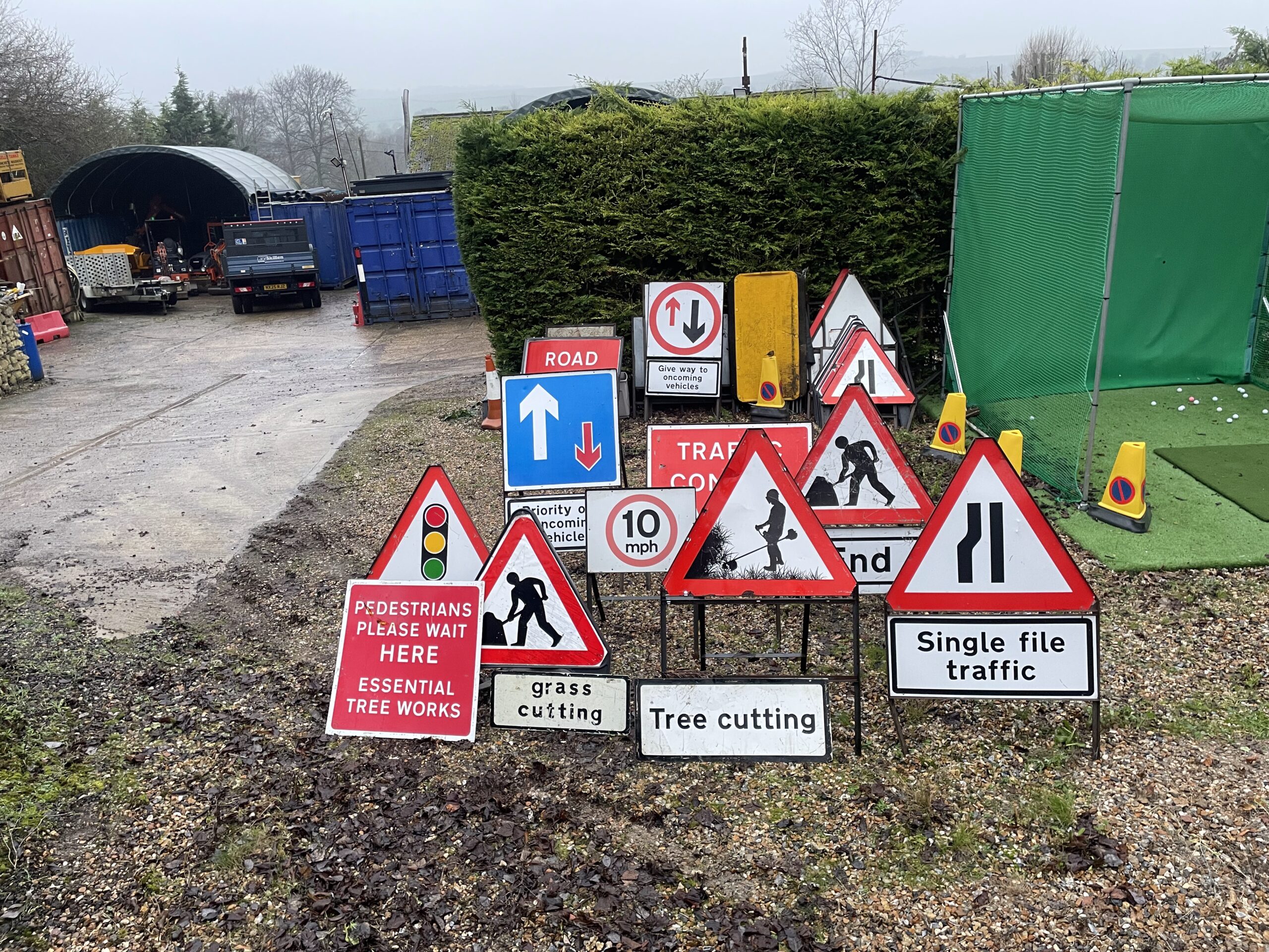 Selection of metal and plastic road signs-